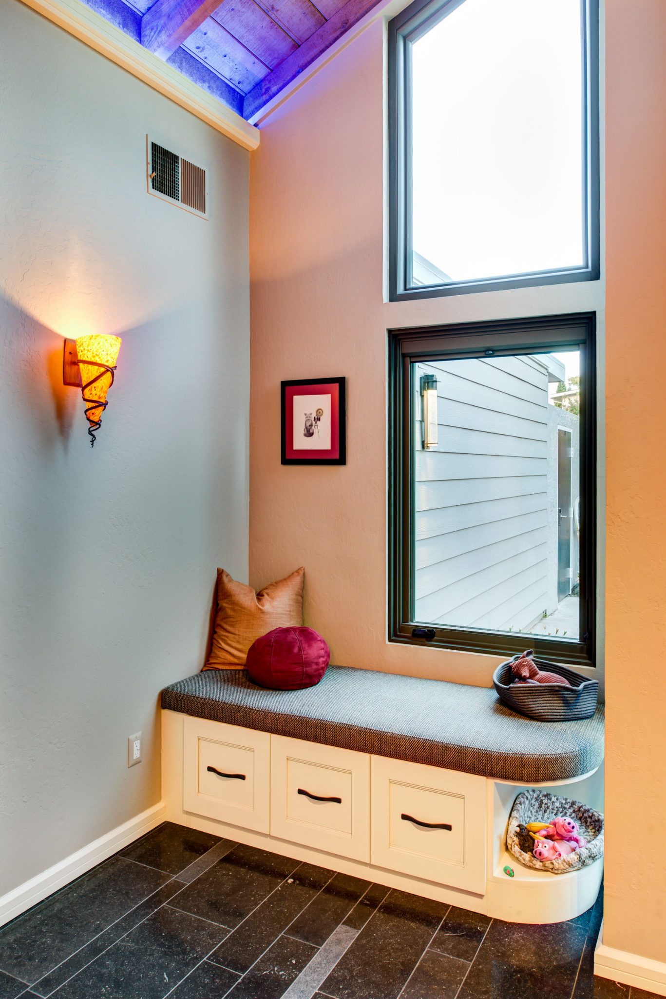 This full Design Build eclectic kitchen remodel was designed to fully maximize the small kitchen area that was existing in the original space. It was important for the homeowners to utilize every inch of usable space for storage, function and entertaining.