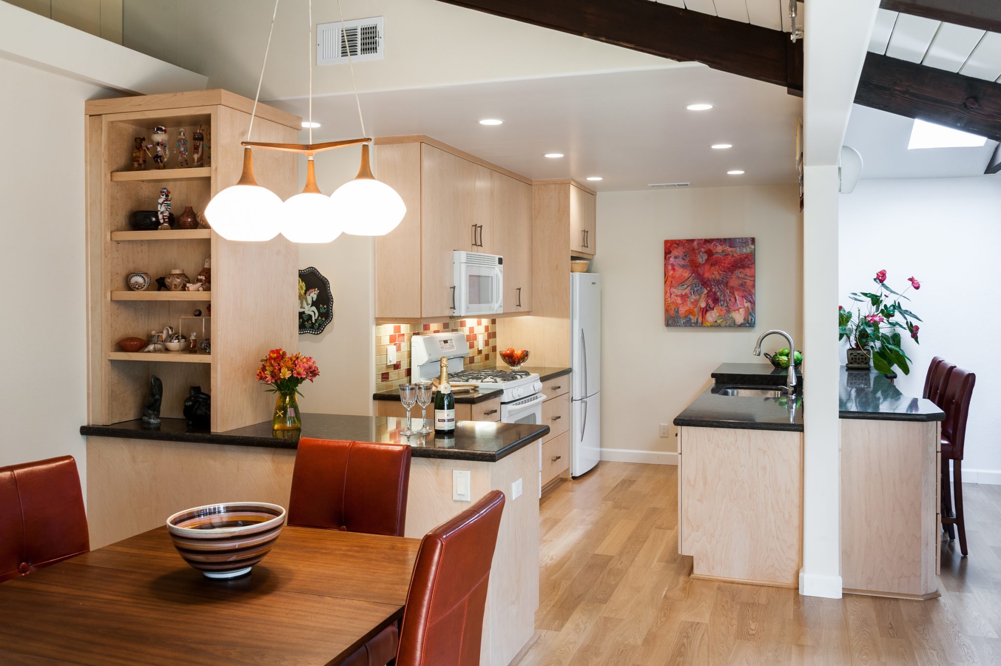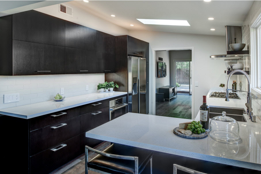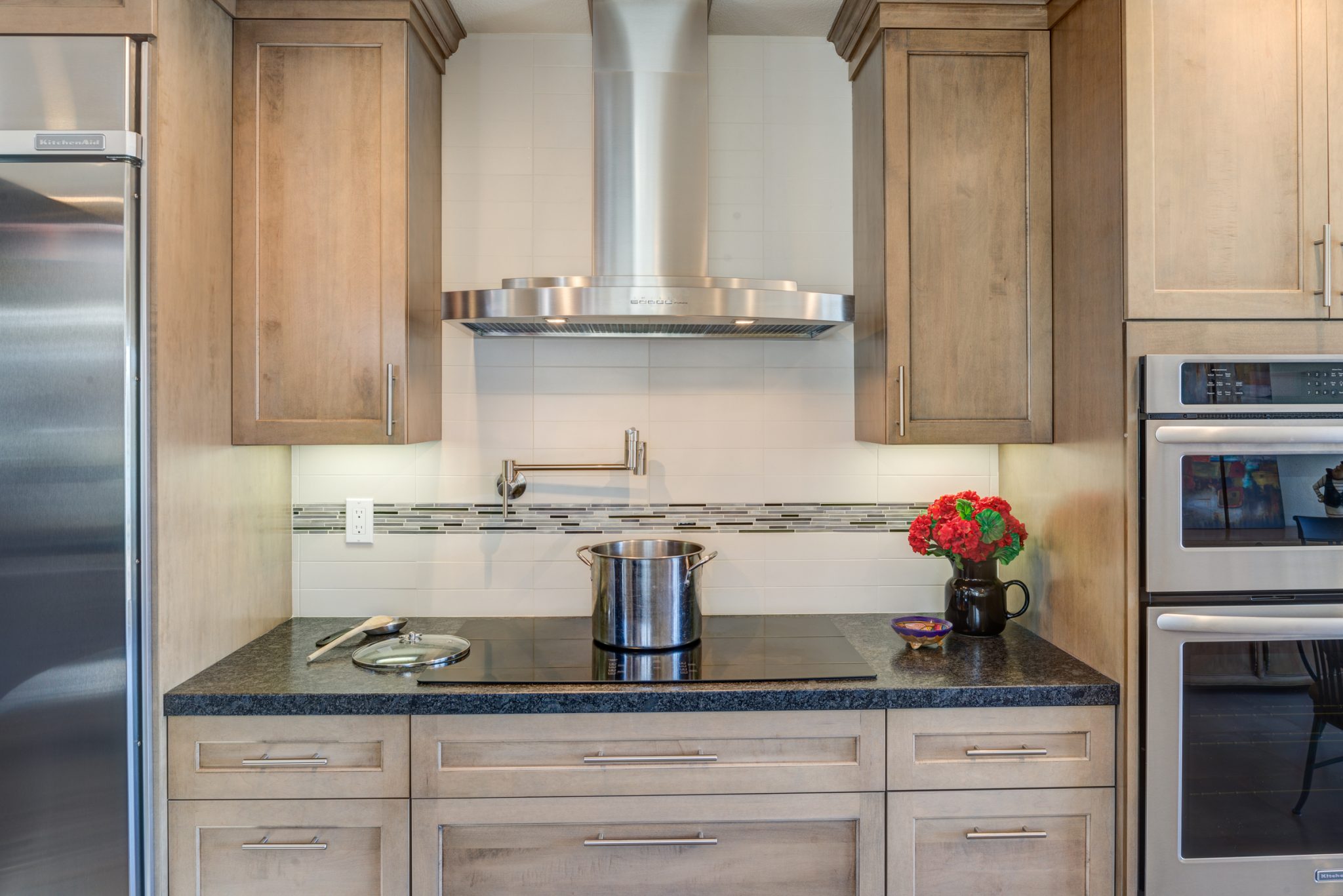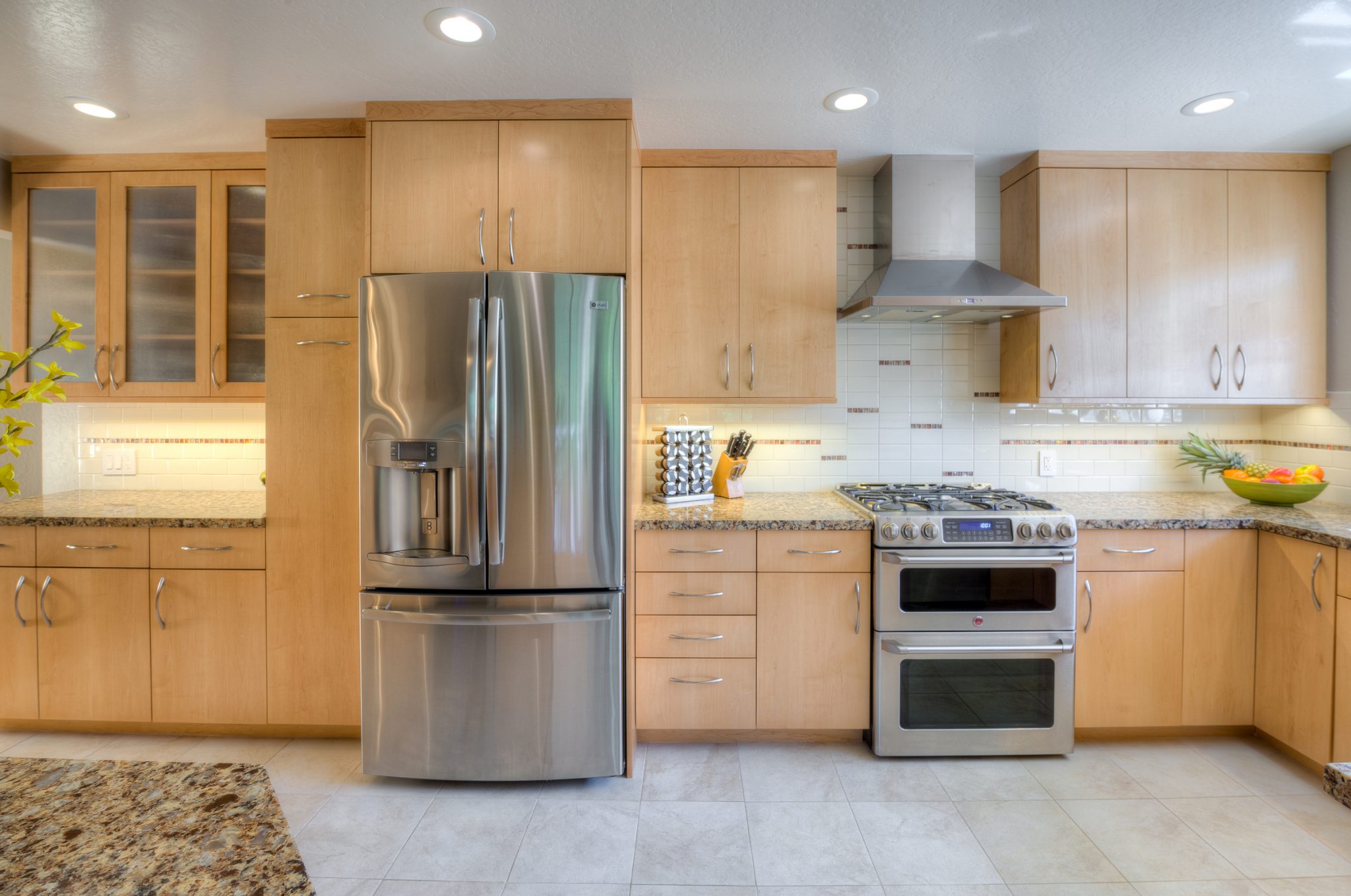 Maple is a hardwood with a tight grain and a much less noticeable figure, which is desired by those who want less grain characteristics in their kitchen cabinets. Maple has a smoother texture and fine grain pattern compared to other hardwoods like Cherry or Alder. Maple does have varying areas of density which creates a somewhat mottles appearance when stained in darker colors. Maple wood may have mineral streaks and small knot – like marks. Maple wood can come in a variety of stains and may yellow with age.