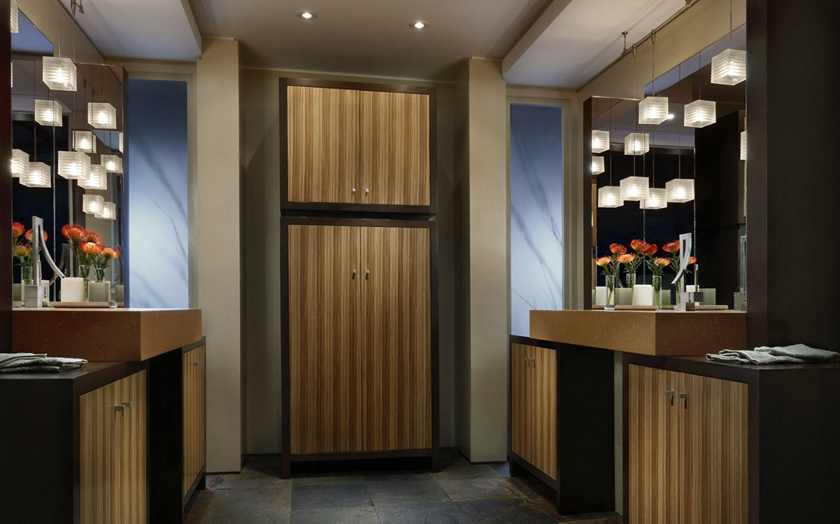 Zebrawood or Zebrano is an exotic wood native to Western African countries. It as a quarter sawn hardwood with a smooth to medium texture. Zebrawood has a golden- yellow base or heartwood with a dark black-brown veining which gives it the heavily striped color hence, a zebra-like appearance. Zebrawood is desired for this distinct pattern and is used in more contemporary designs of kitchen cabinets. Zebrawood lightens slightly over time and when exposed to sunlight.